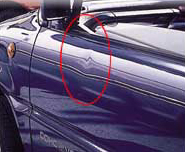 | プレスライン上に深く入ったり、キツイ線の入ったヘコミは修復痕が残る場合があります。 |